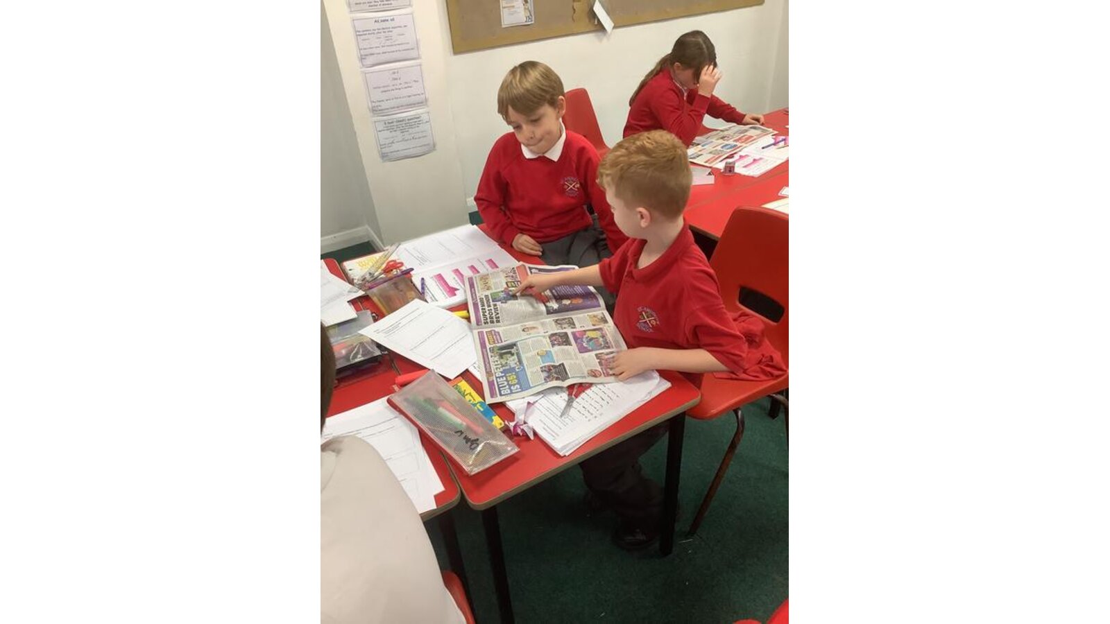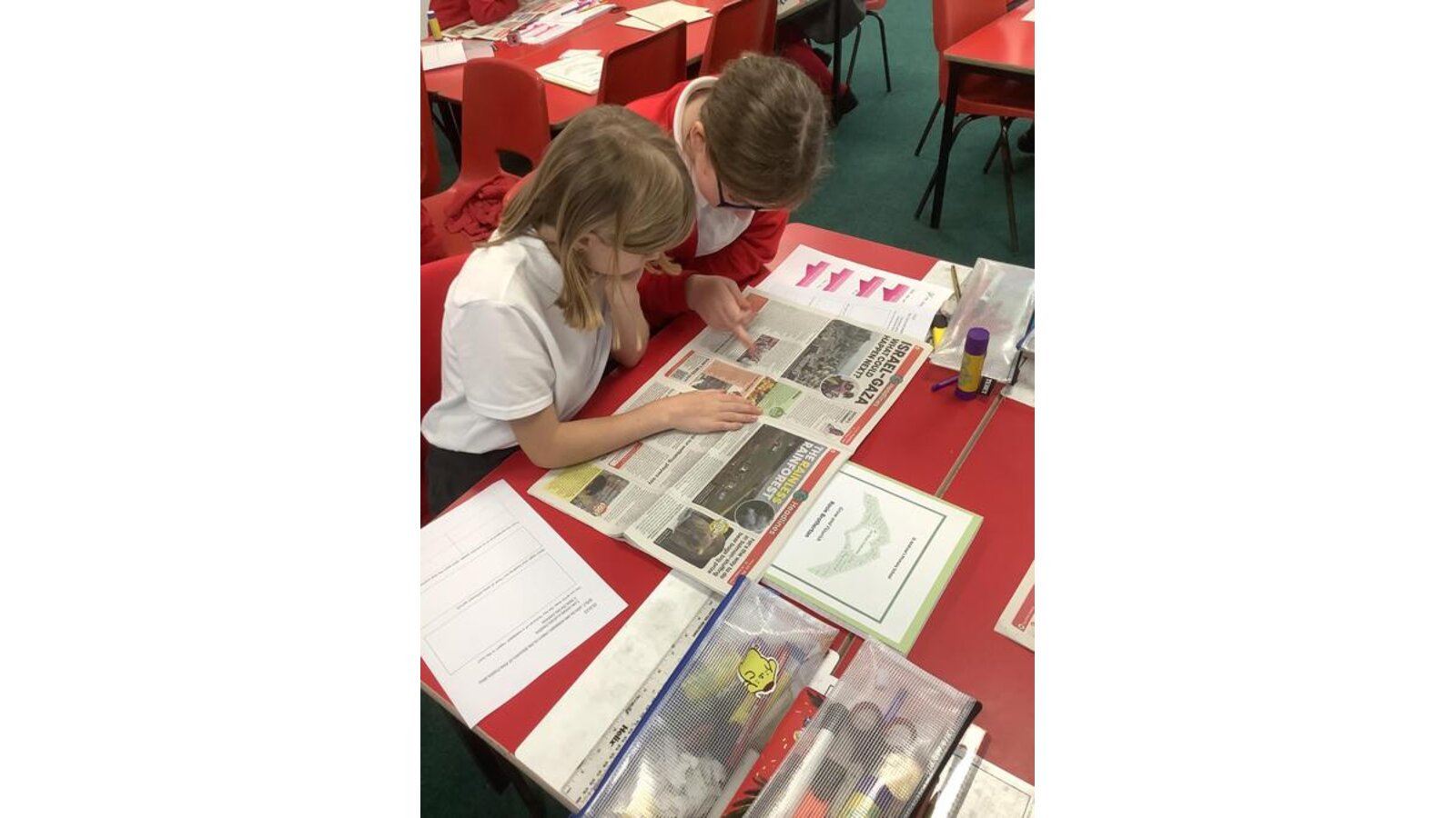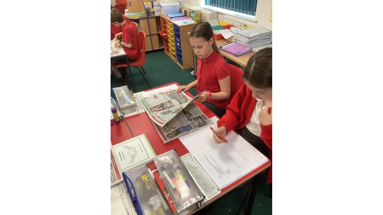 In English this week, we were working on writing newspaper reports about the discovery of Anne Frank’s diary. In preparation for this, children looked at examples of newspapers and picked out the common key features. They then used these to inform their own plan.