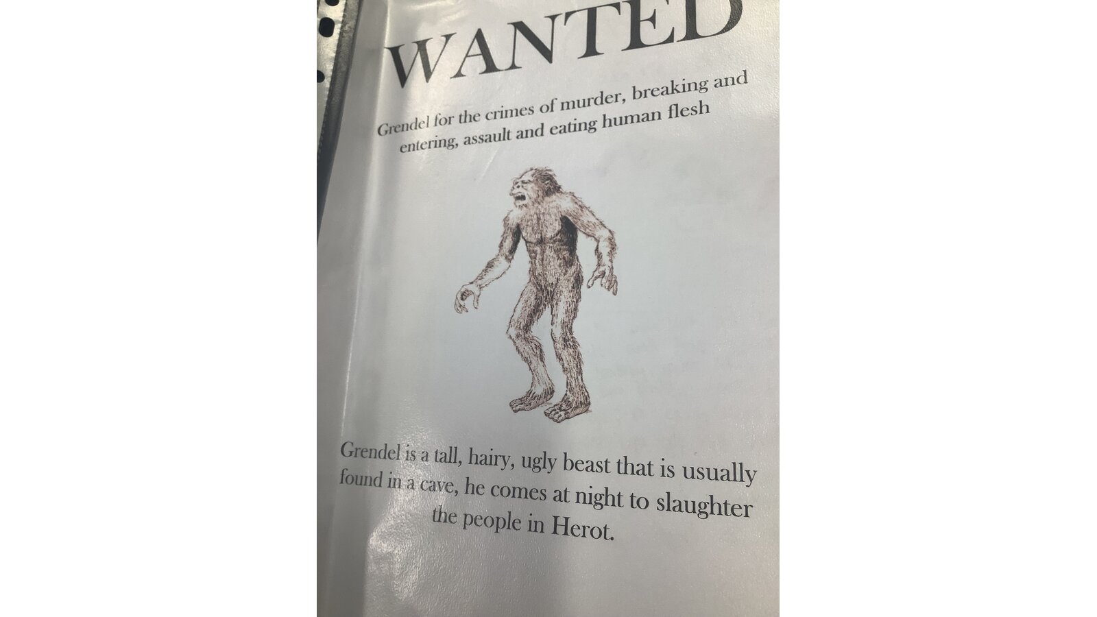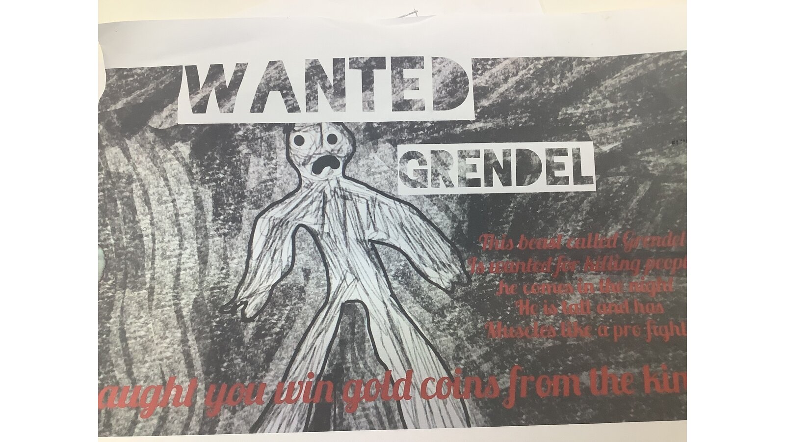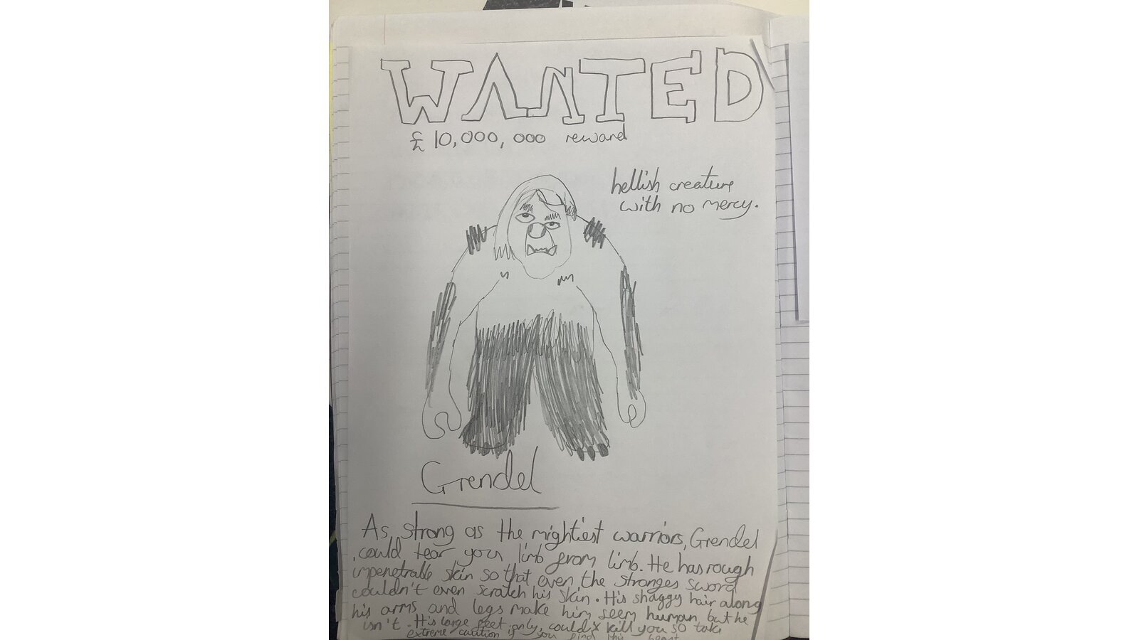 7 May 2024 dbuckley Class Three Previous Next Our class have been reading the Beowulf saga and have created ‘Wanted’ posters for Grendel.