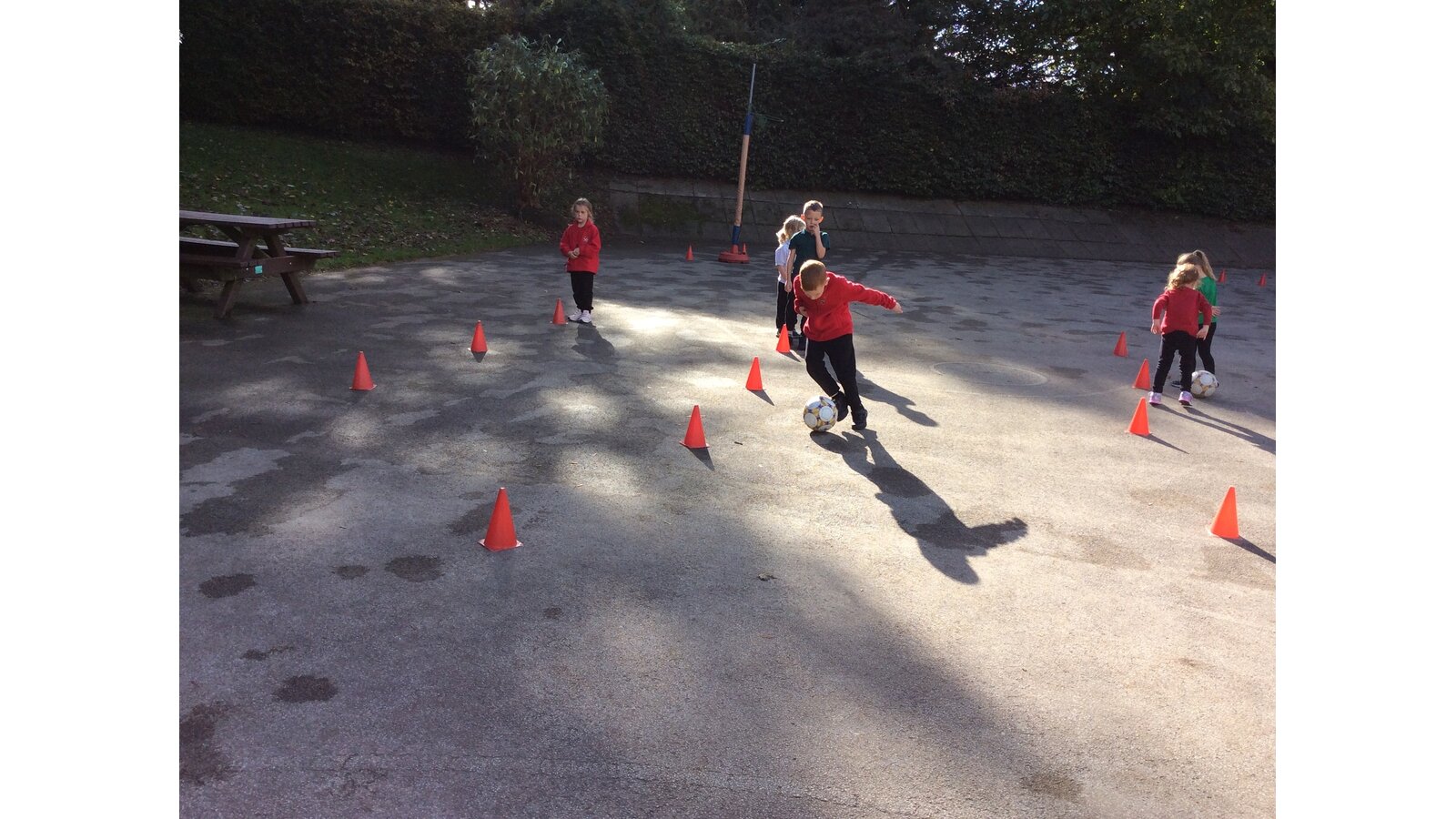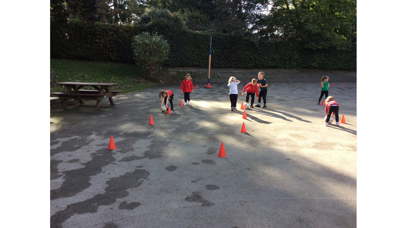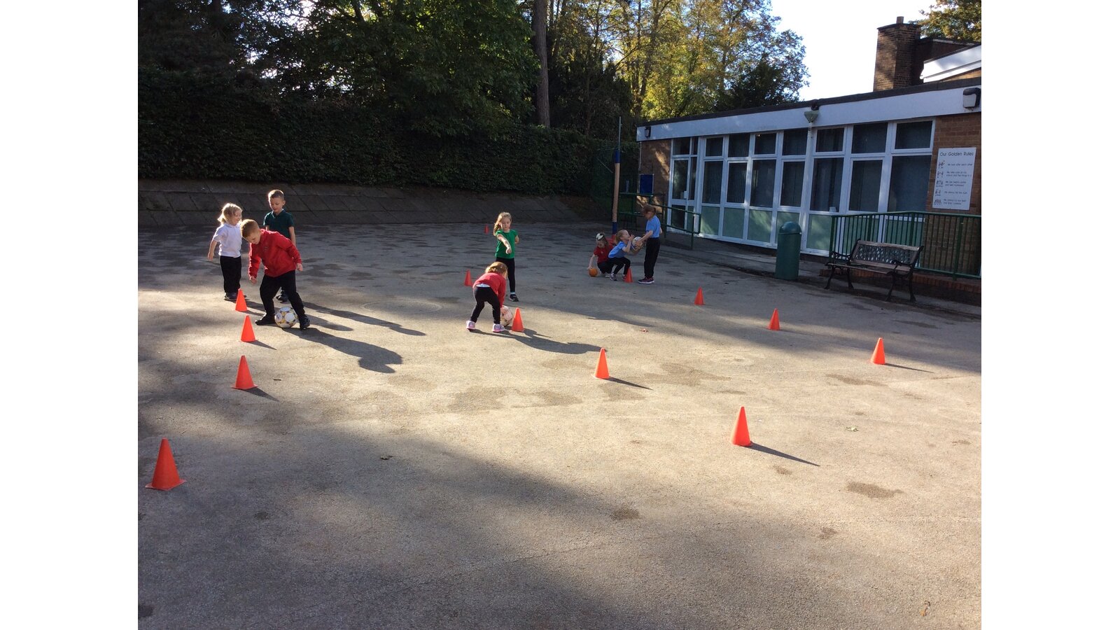 Class 1 explored the different ways they could dribble a ball. Some children had a go at guiding the ball using their hands and other children enjoyed dribbling the ball with their feet. Great PE everyone!