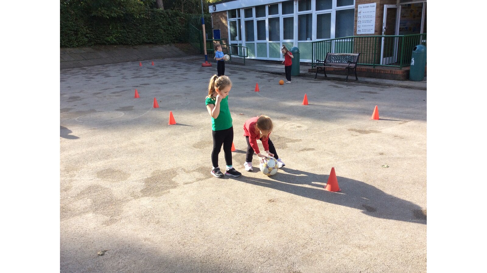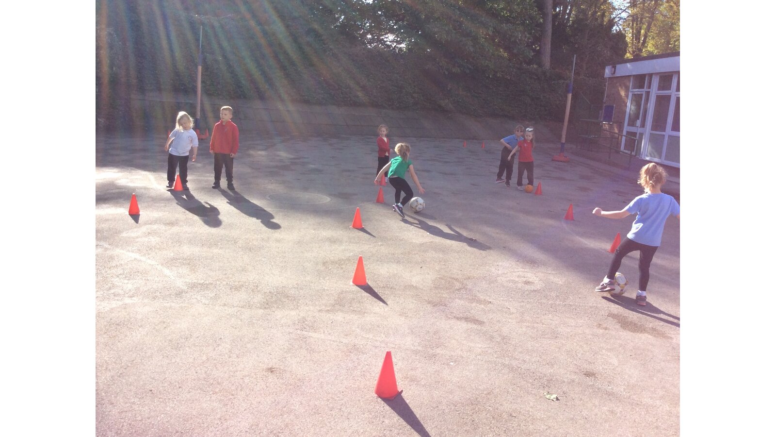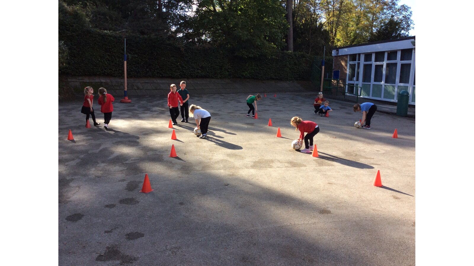 Class 1 explored the different ways they could dribble a ball. Some children had a go at guiding the ball using their hands and other children enjoyed dribbling the ball with their feet. Great PE everyone!