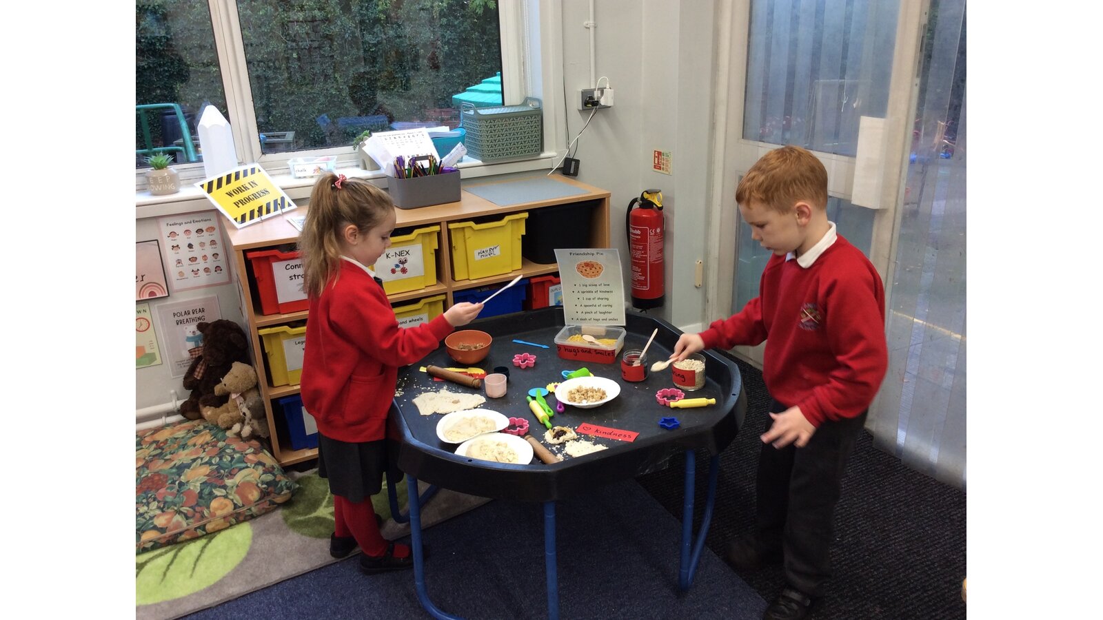 Finally, they worked together to make a very special friendship pie. Children added “ingredients” like kindness, love, sharing, laughter, care and smiles to make the perfect pie.