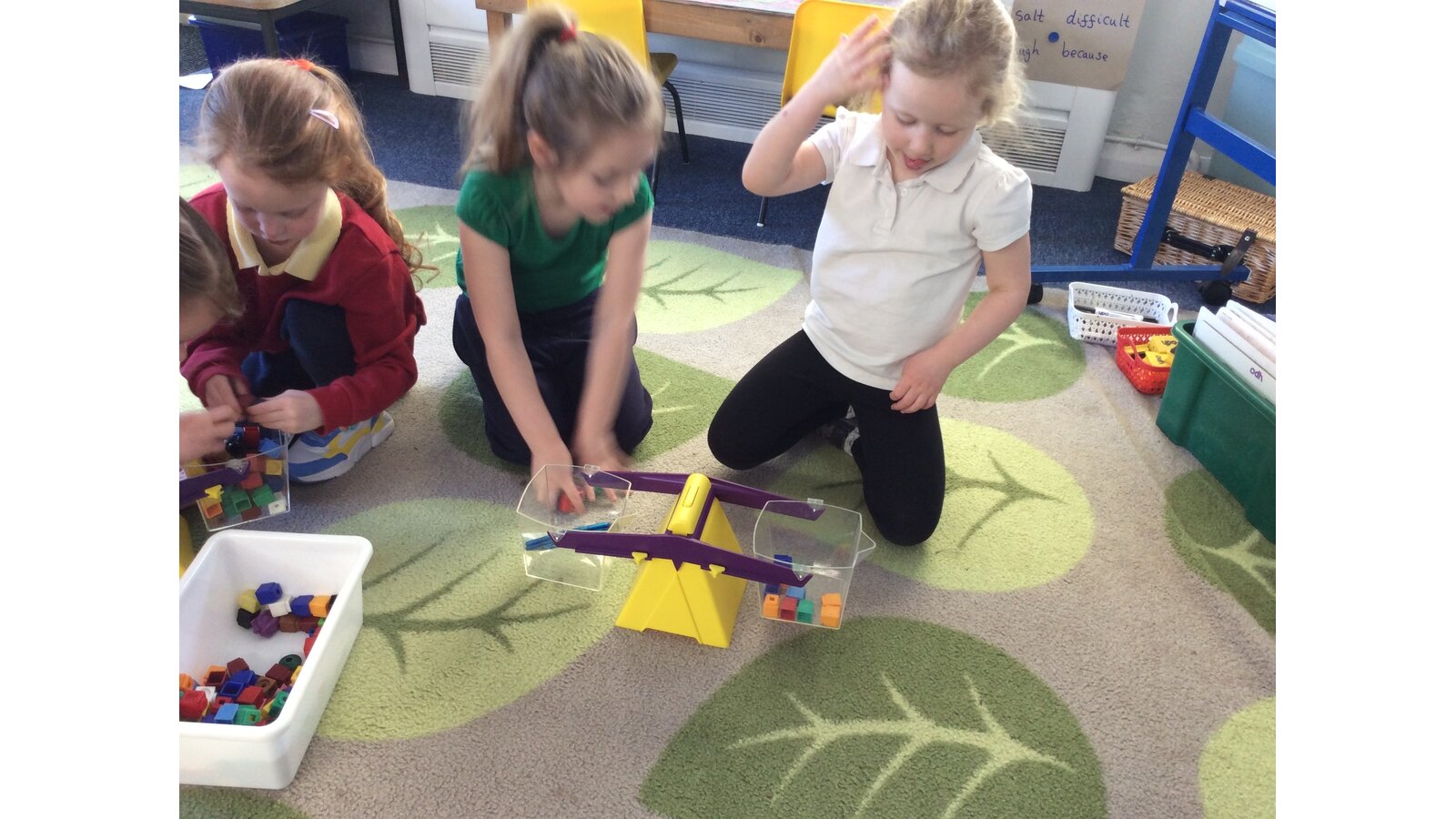 Later in the week, we took our learning further by using balancing scales to measure mass. The children chose different objects and used cubes and other items to balance the scales, counting how many were needed to match the object’s weight.