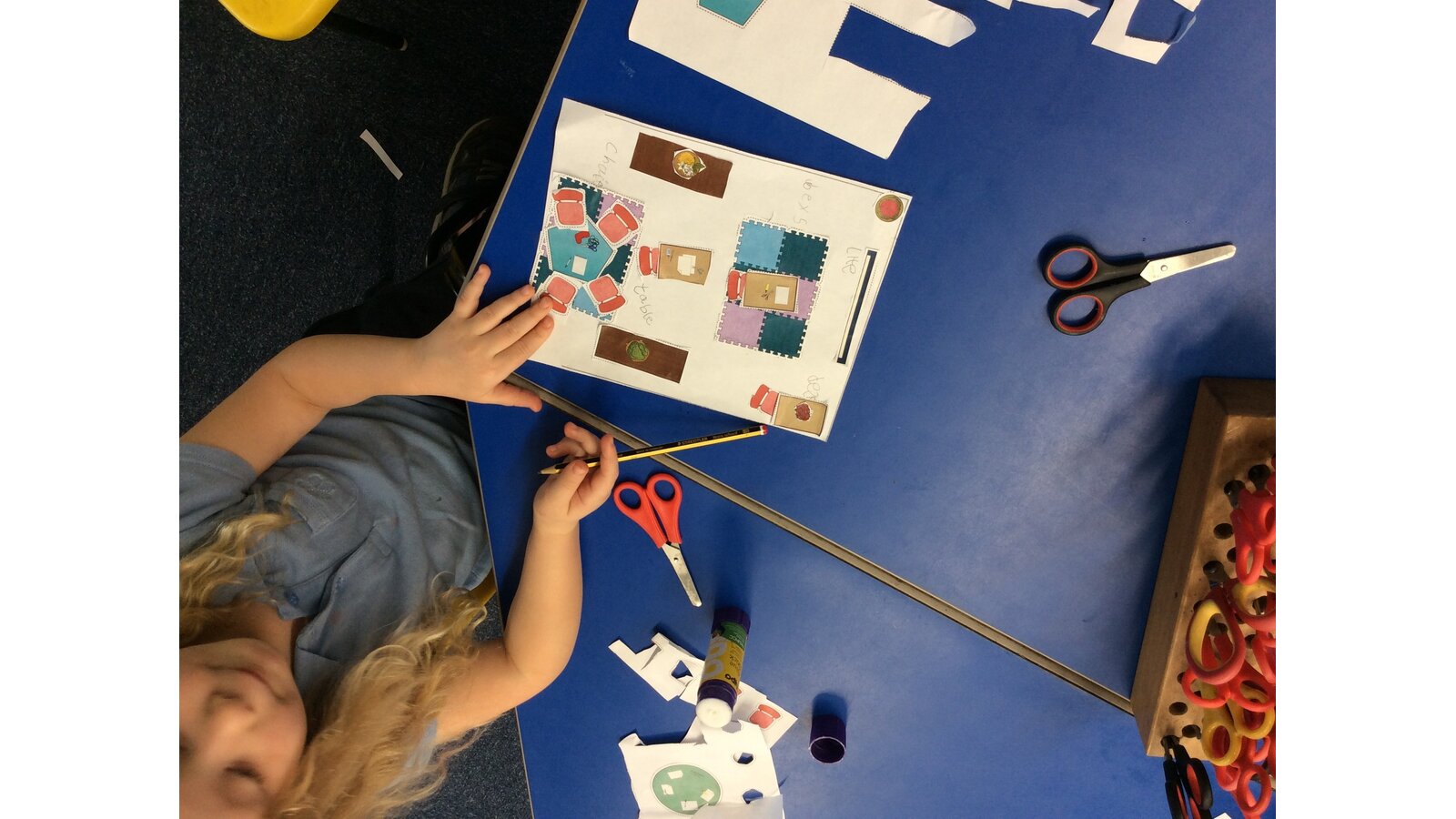Year 1 and 2 designed maps of their perfect classroom from an aerial view. They added labels and symbols and explained why they had positioned their features in certain areas.