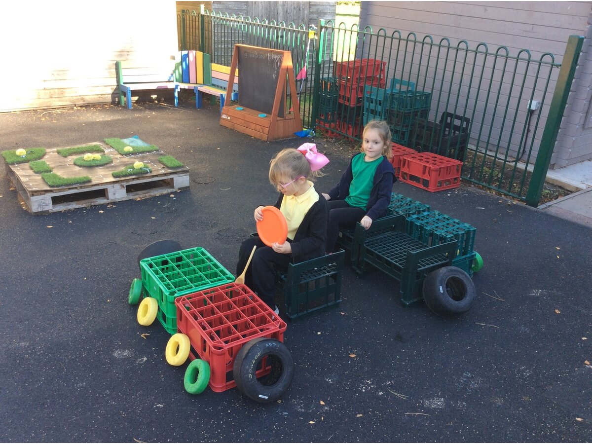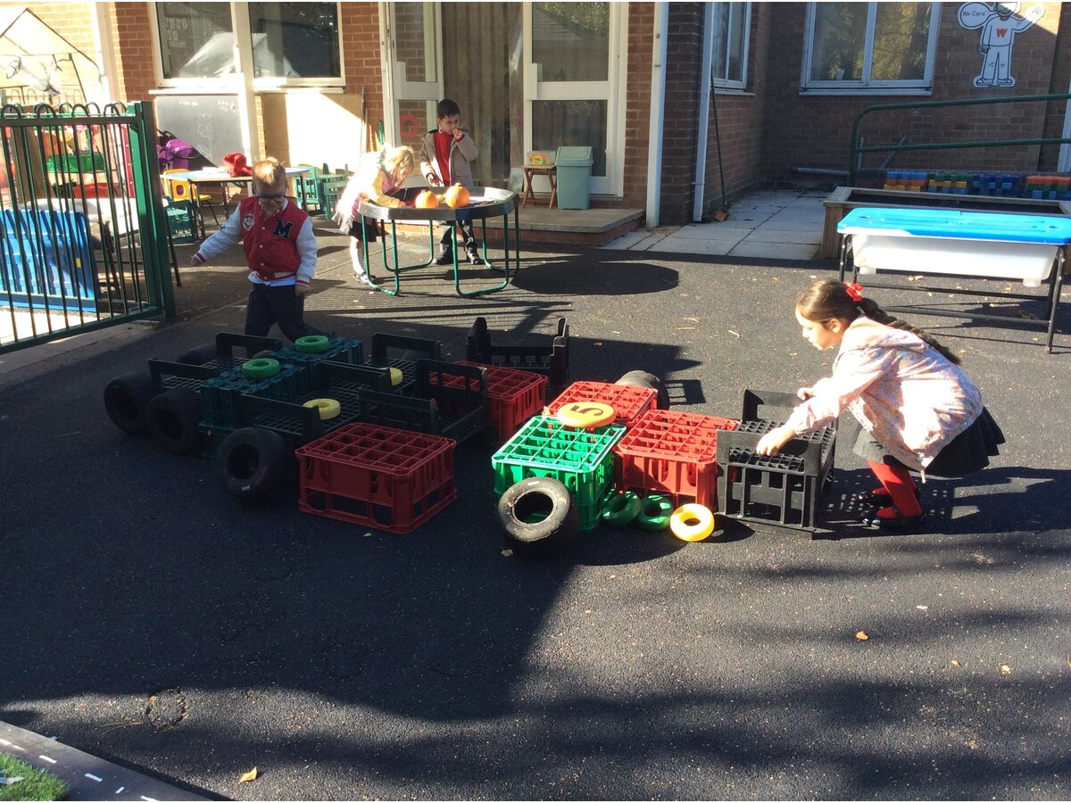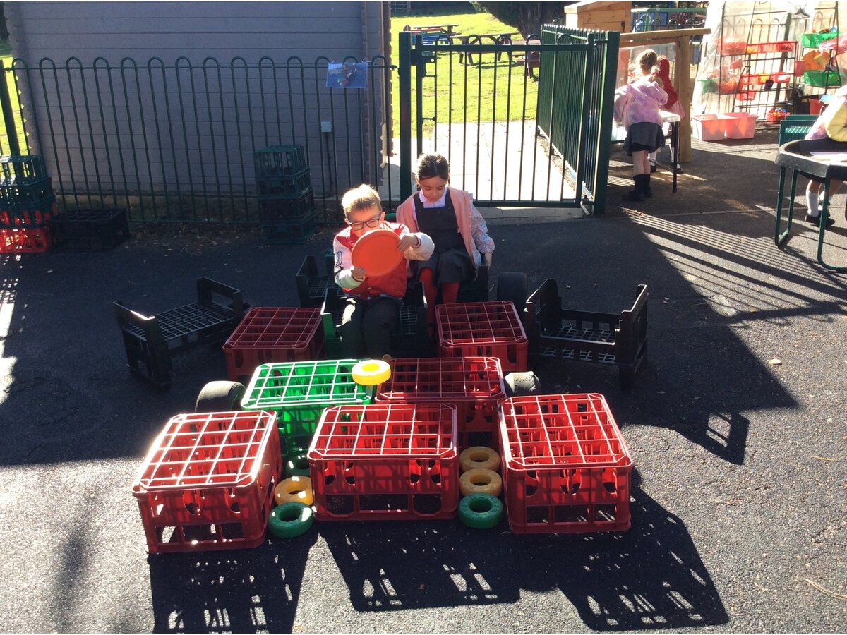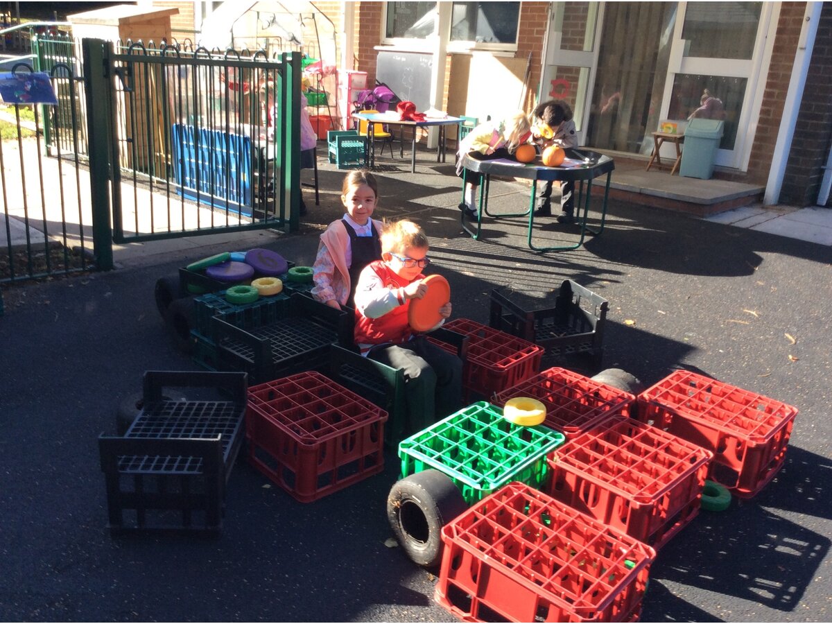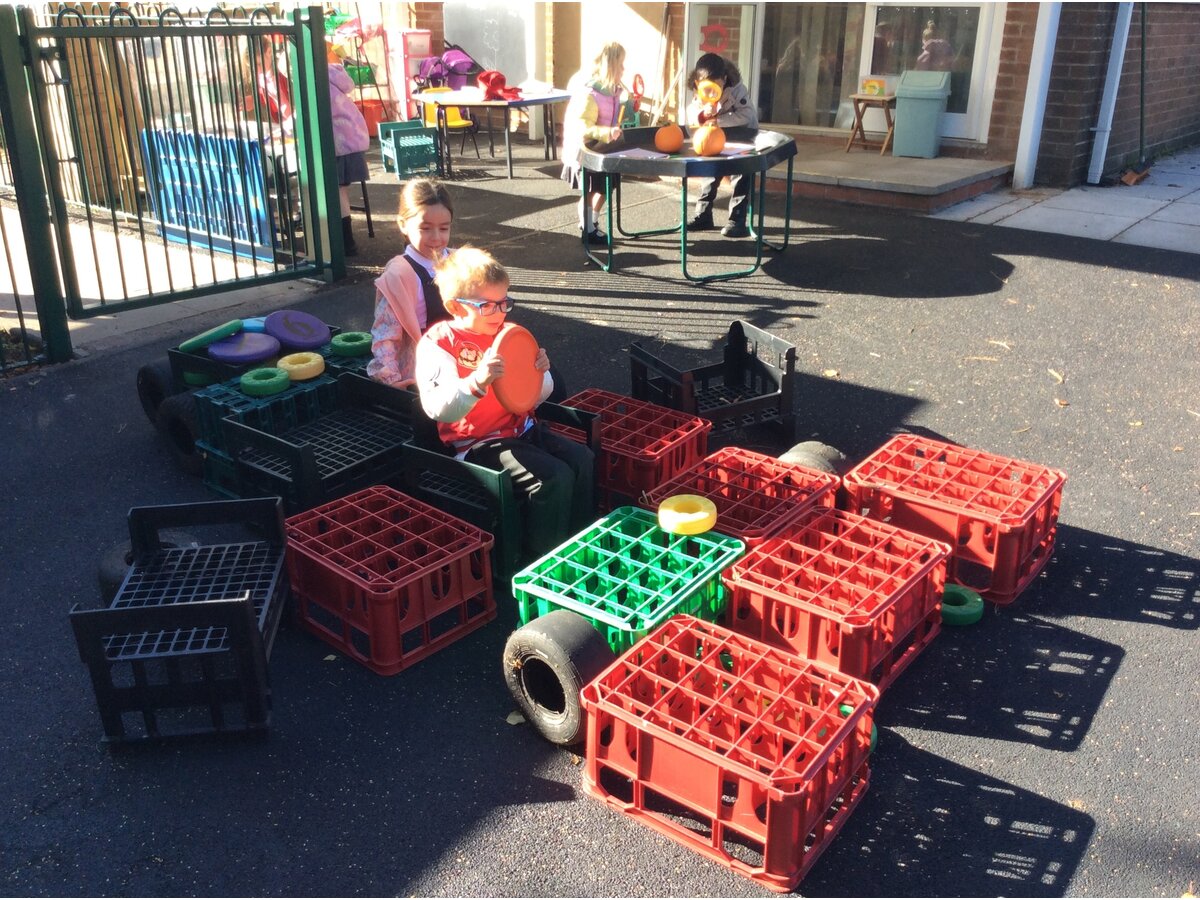 During our outdoor Busy Bee time, the EYFS children had a fantastic time using their imagination and teamwork to build their own vehicles!