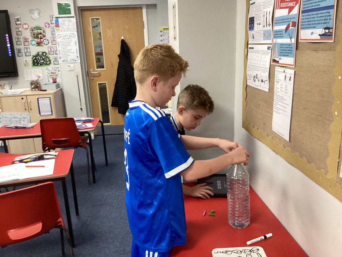 We have been learning about water resistance. To test our theories we have been exploring the idea of streamlining. We have learnt that large shapes experience more water resistance and so move more slowly through the water.
