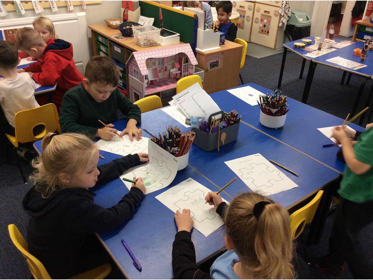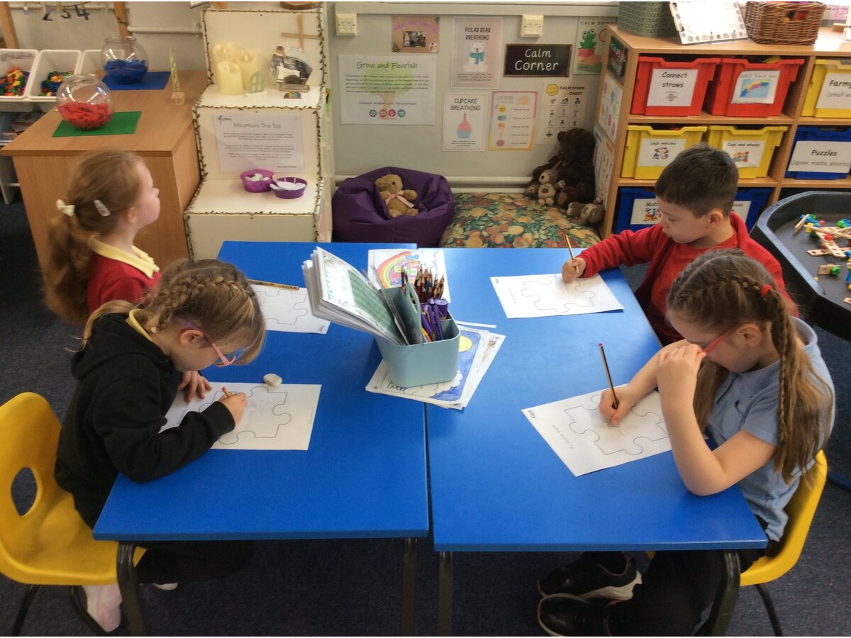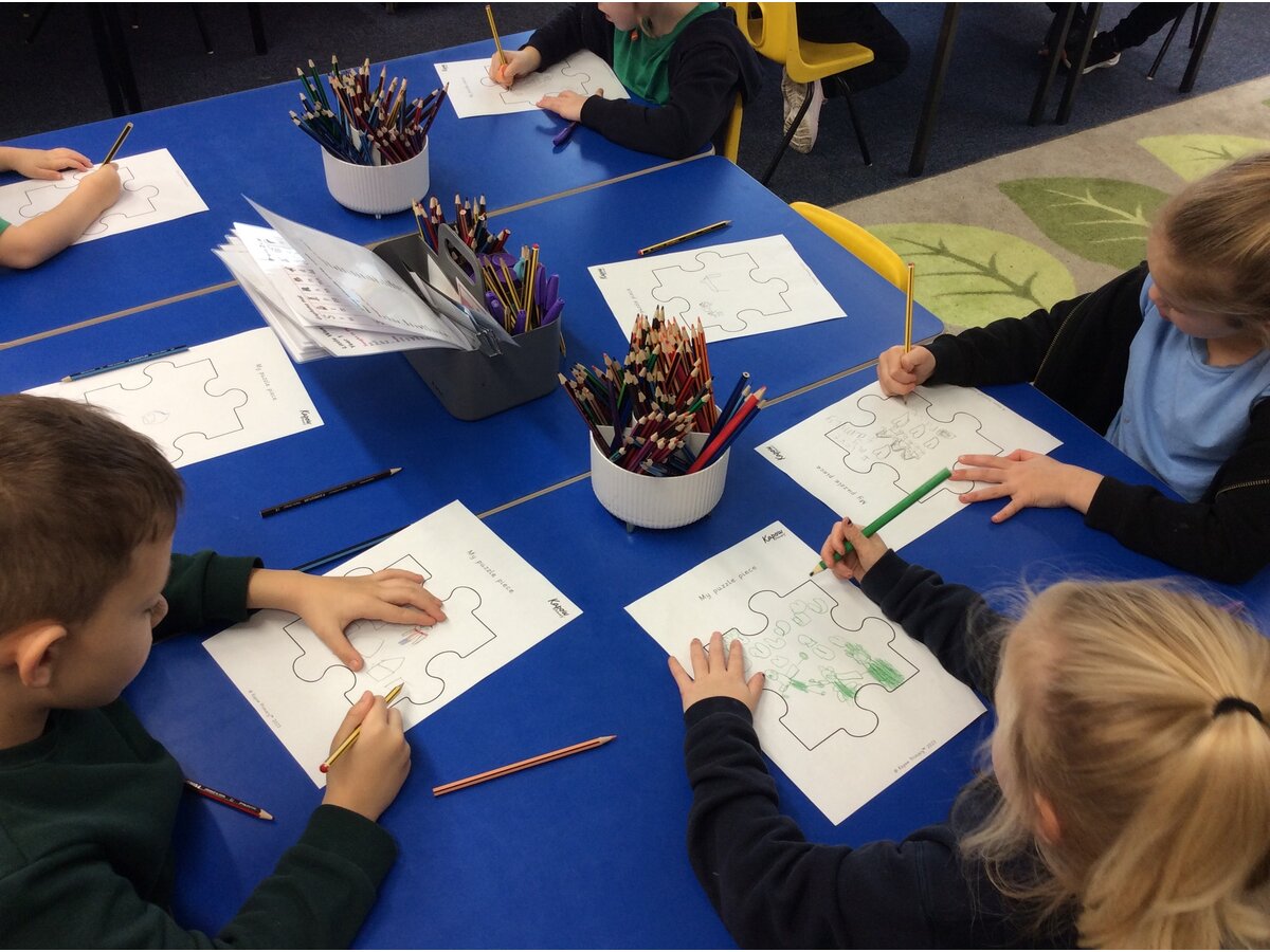 Before lunch, we headed outside for some fun team games, following Steel’s advice that keeping active helps us stay healthy and happy. In the afternoon, we enjoyed some mindful colouring and created our own ‘All About Me’ jigsaw pieces to show what makes each of us special and unique. We then had lots of fun guessing whose jigsaw belonged to who!