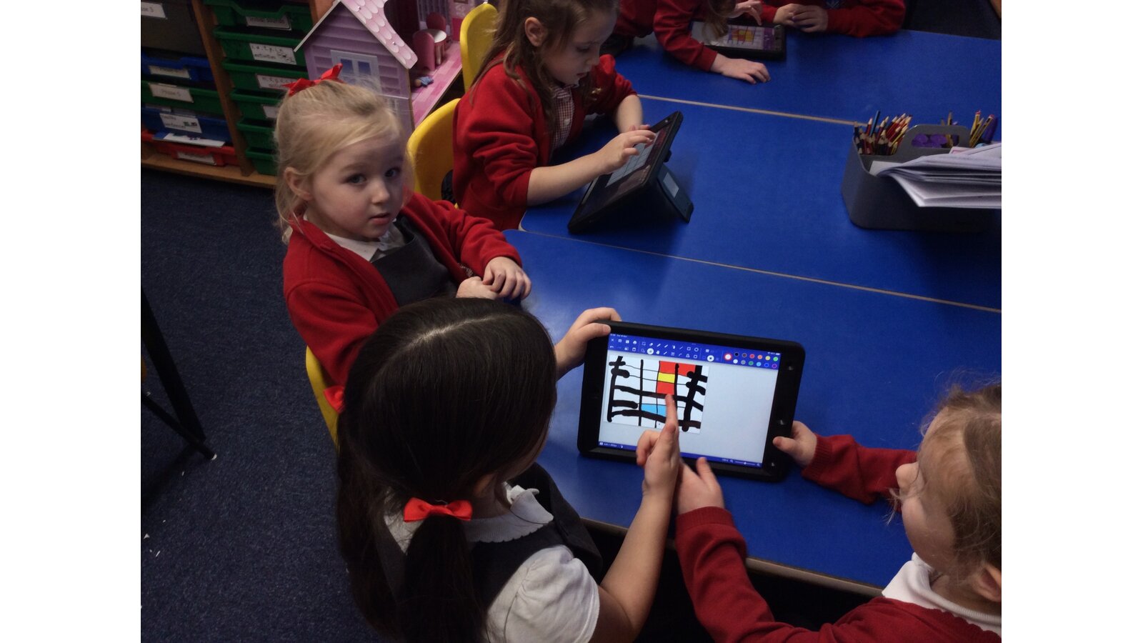 Using the iPads, we became digital artists! Our goal was to recreate Mondrian’s abstract style: