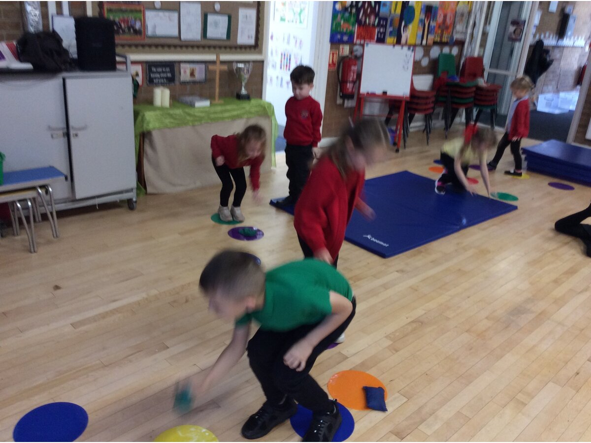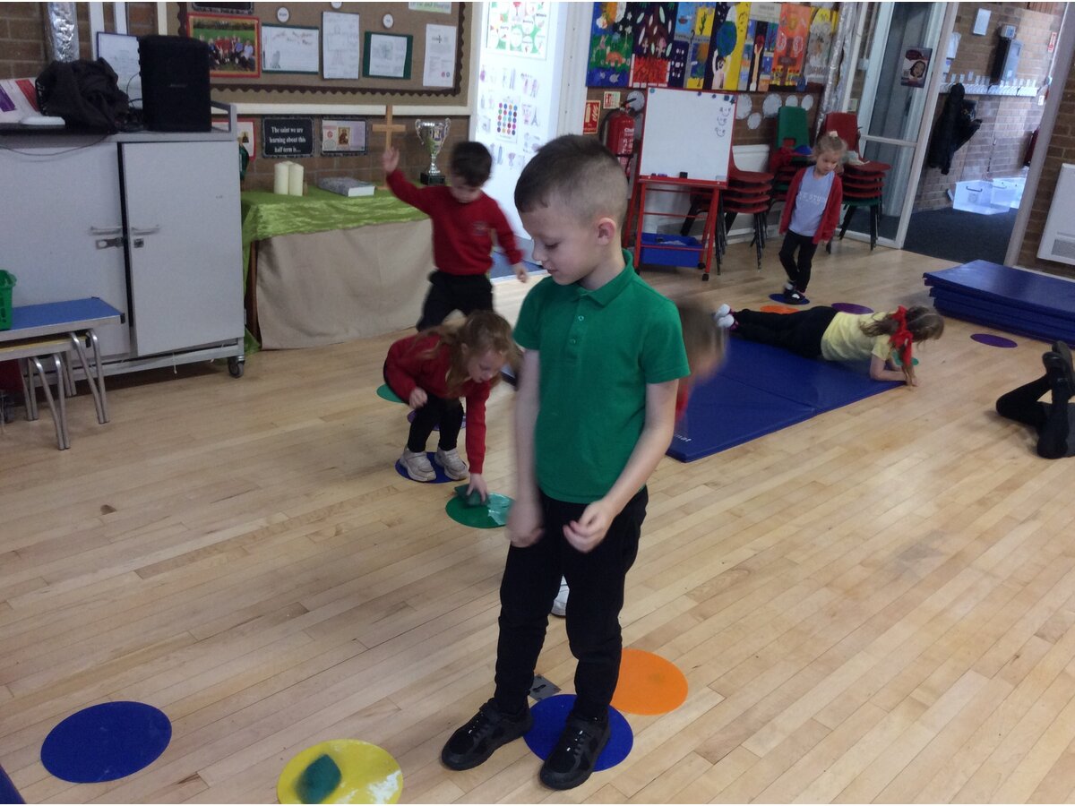 - Leaping Frogs: We practised a strong, controlled jump! The children crouched down low and then sprung onto the landing mat, showing excellent power in their legs. Ribbit!