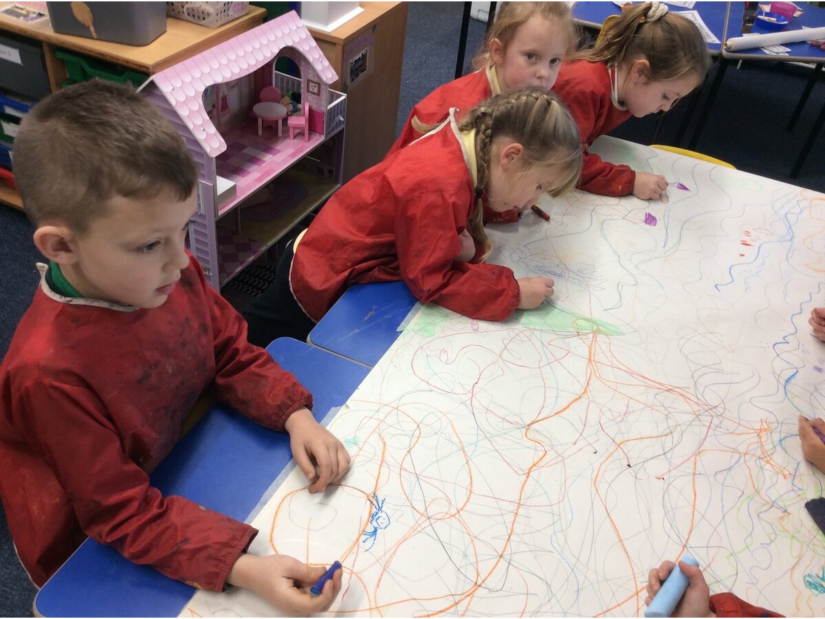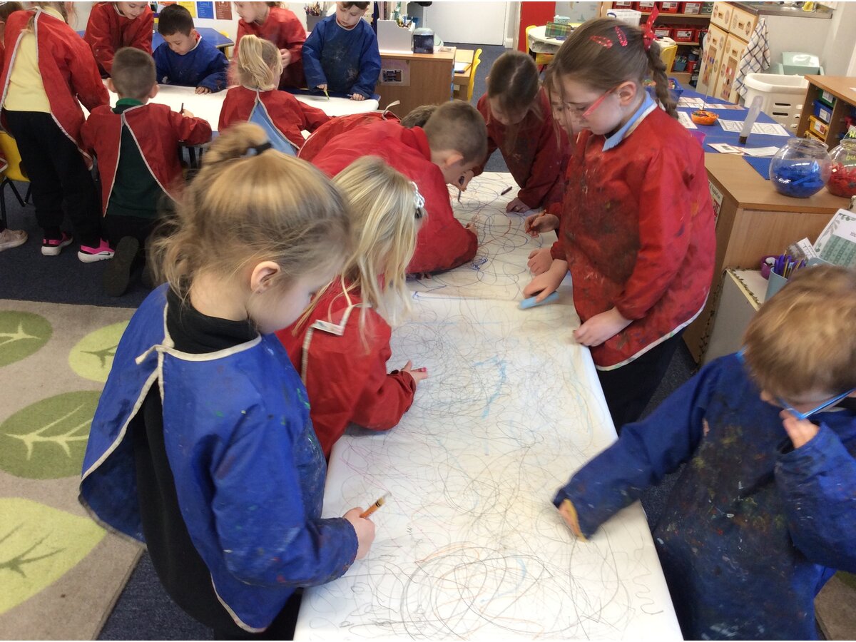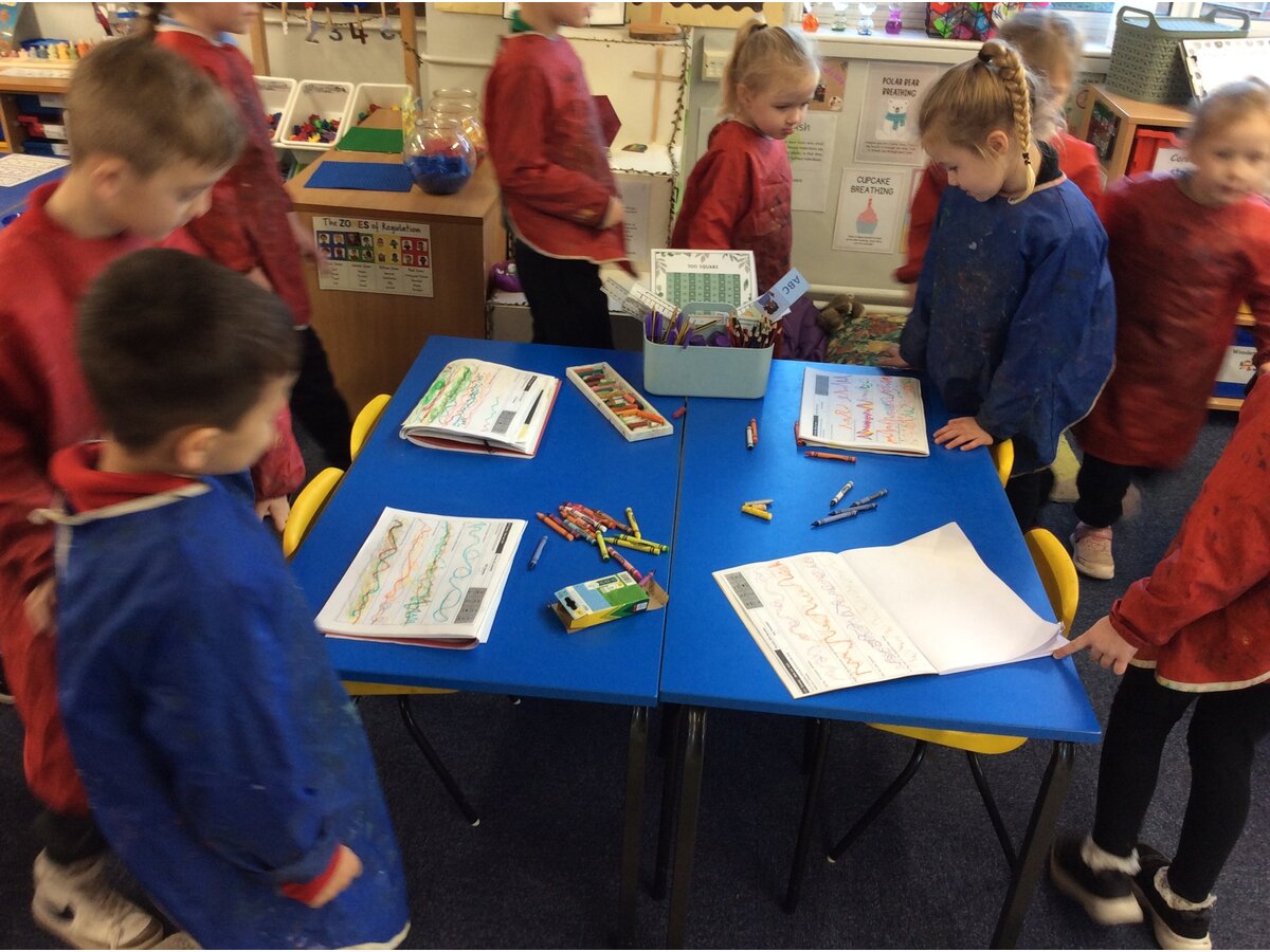 We began our artistic journey by listening to some truly dynamic pieces of music. We listened to the super speedy 'Flight of the Bumblebee'! As the music buzzed faster and faster, so did our pencils! Many children used quick, energetic zigzag lines, darting high and low across their paper to represent the bumblebee's speedy flight and the music getting louder and quieter. It was wonderful to see how the sounds translated into such lively marks!