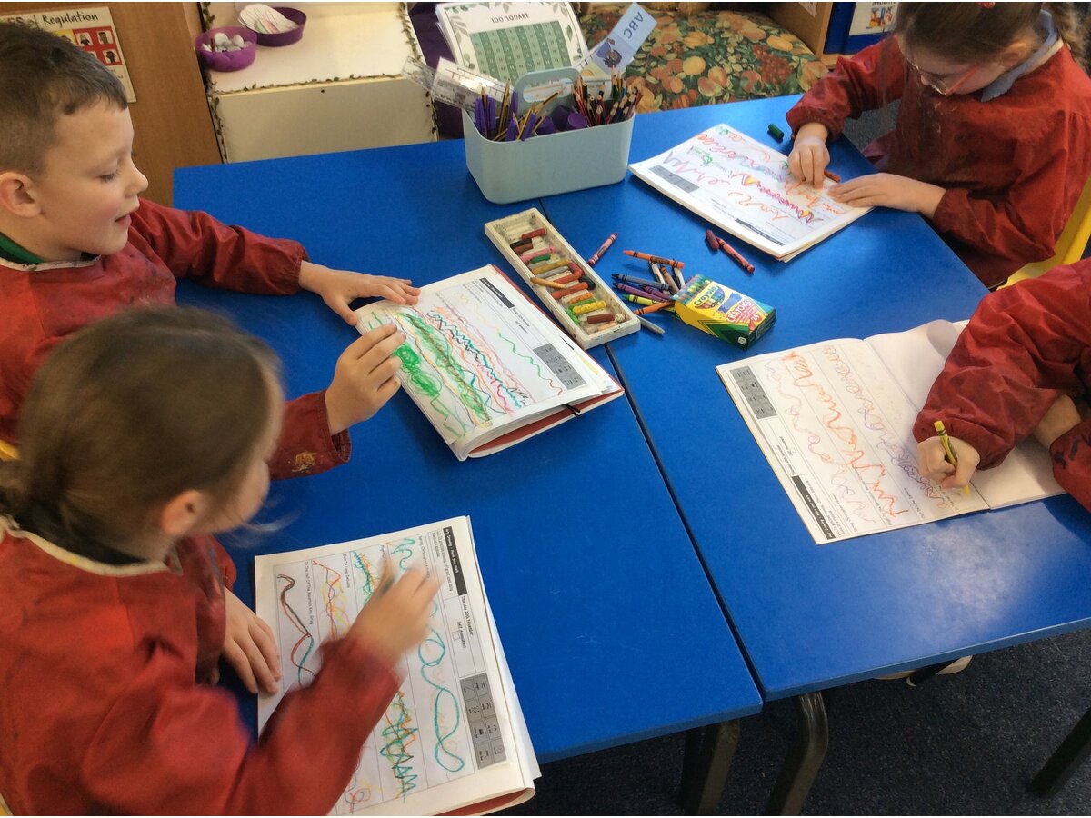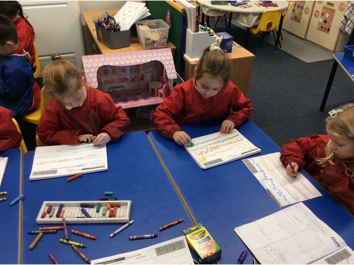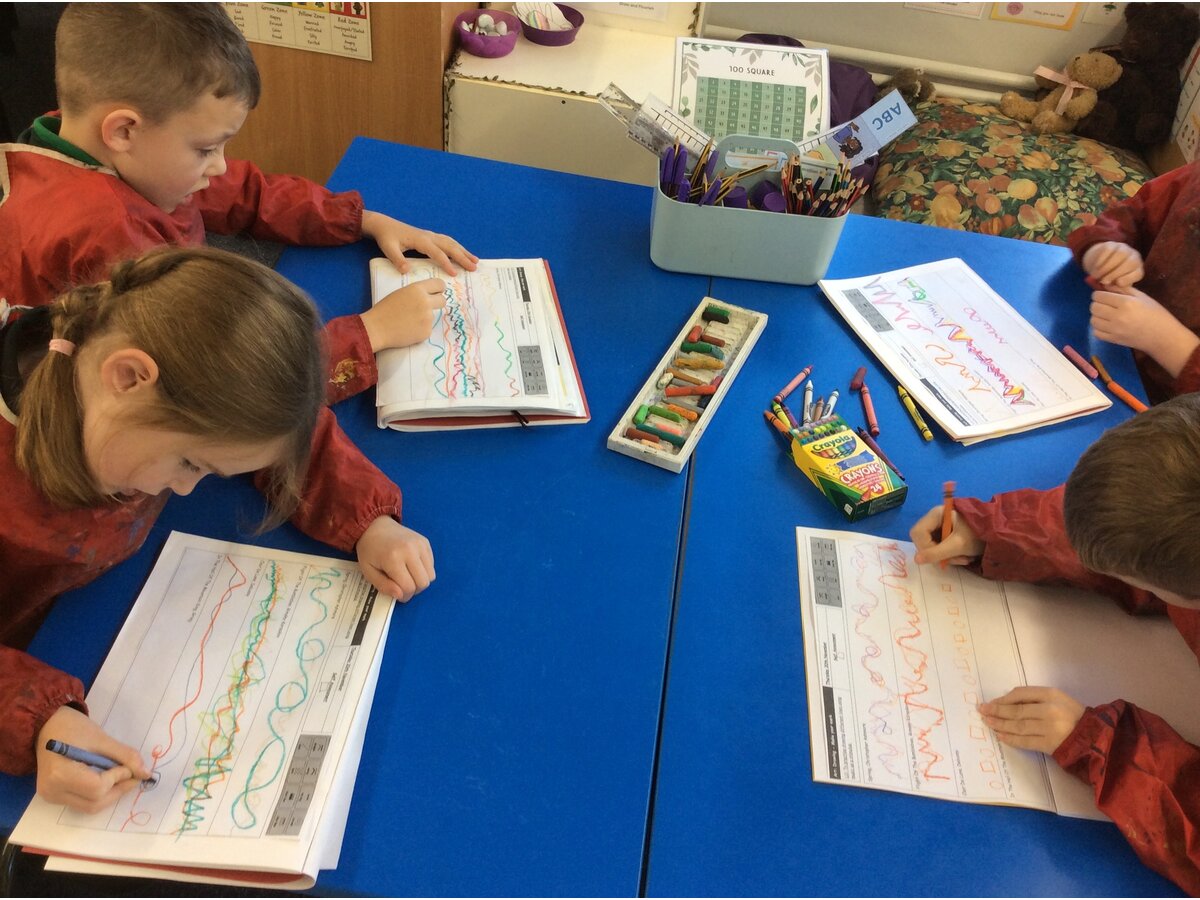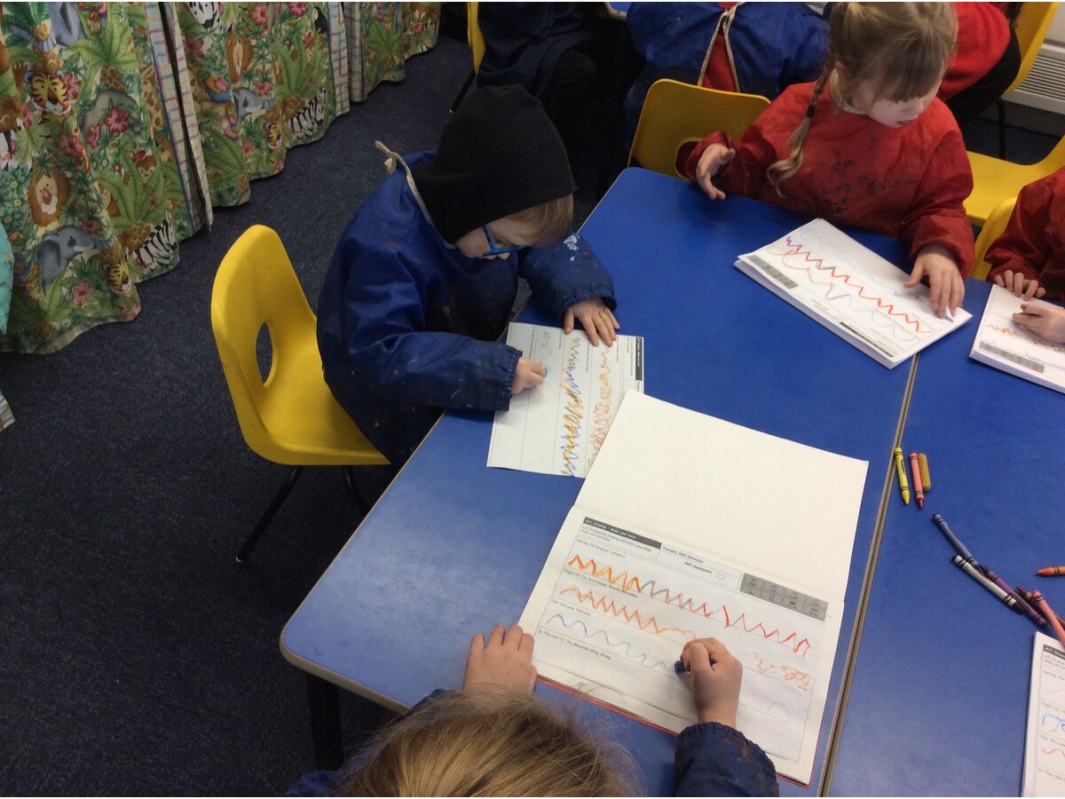 We began our artistic journey by listening to some truly dynamic pieces of music. We listened to the super speedy 'Flight of the Bumblebee'! As the music buzzed faster and faster, so did our pencils! Many children used quick, energetic zigzag lines, darting high and low across their paper to represent the bumblebee's speedy flight and the music getting louder and quieter. It was wonderful to see how the sounds translated into such lively marks!