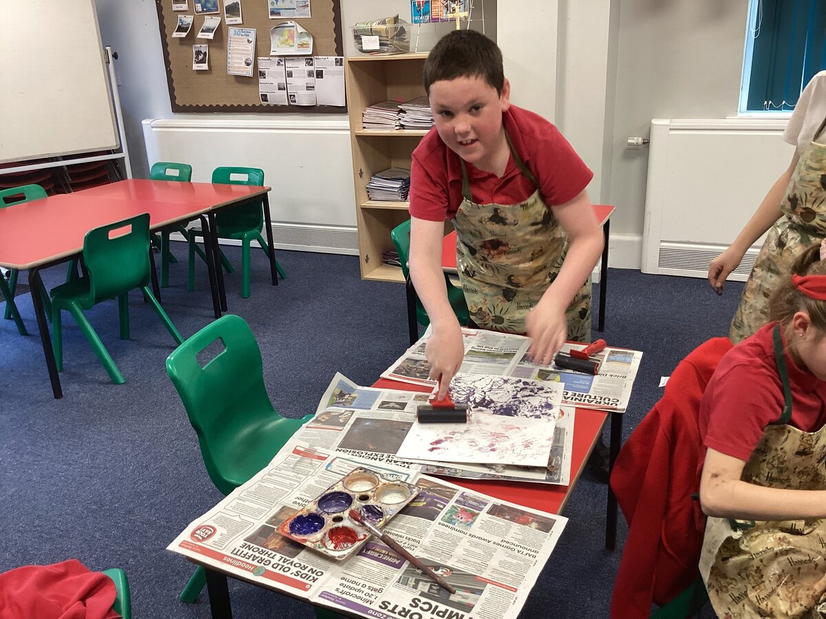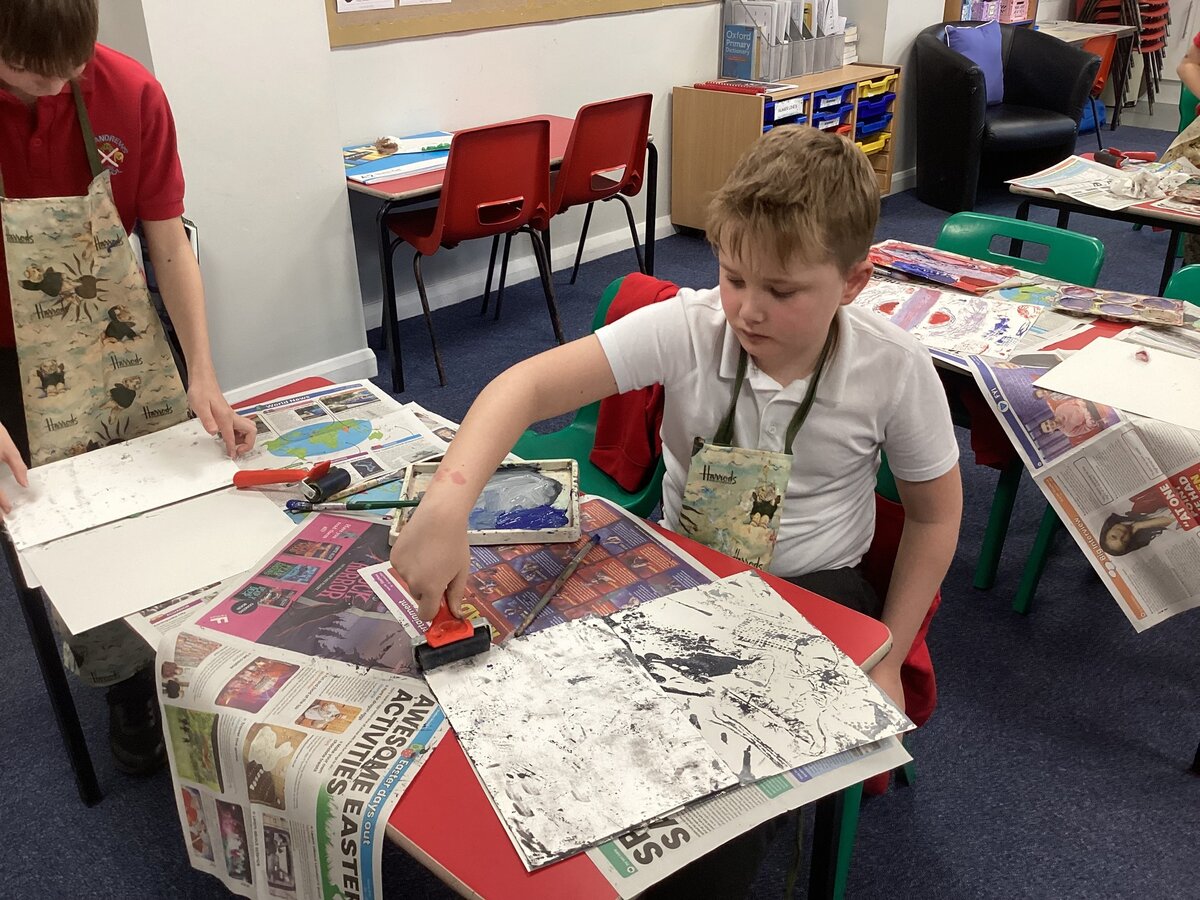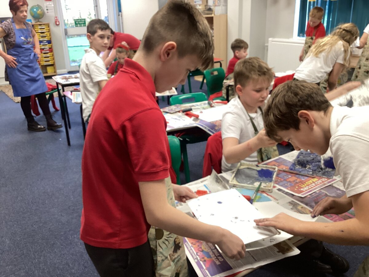 In Art we have been looking at Retrofuturism and creating our own vision of the future,inspired by Teis Albers. We made a collagraph plate to use to print a background for our artwork. Then we sketched our futuristic ideas ready to put onto our background.