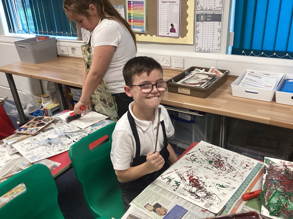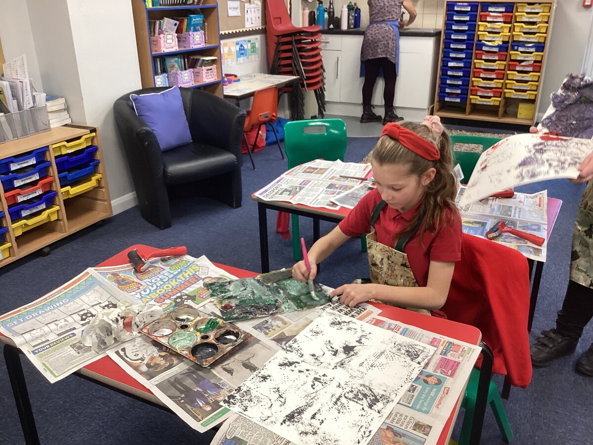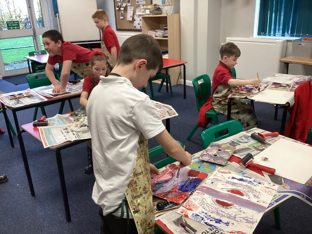In Art we have been looking at Retrofuturism and creating our own vision of the future,inspired by Teis Albers. We made a collagraph plate to use to print a background for our artwork. Then we sketched our futuristic ideas ready to put onto our background.