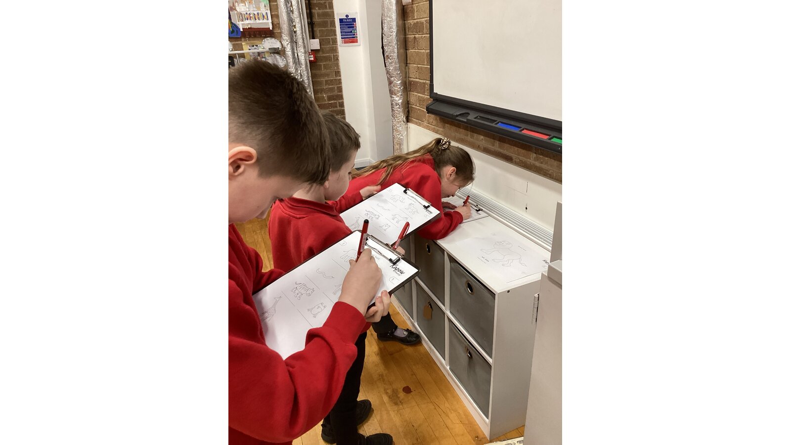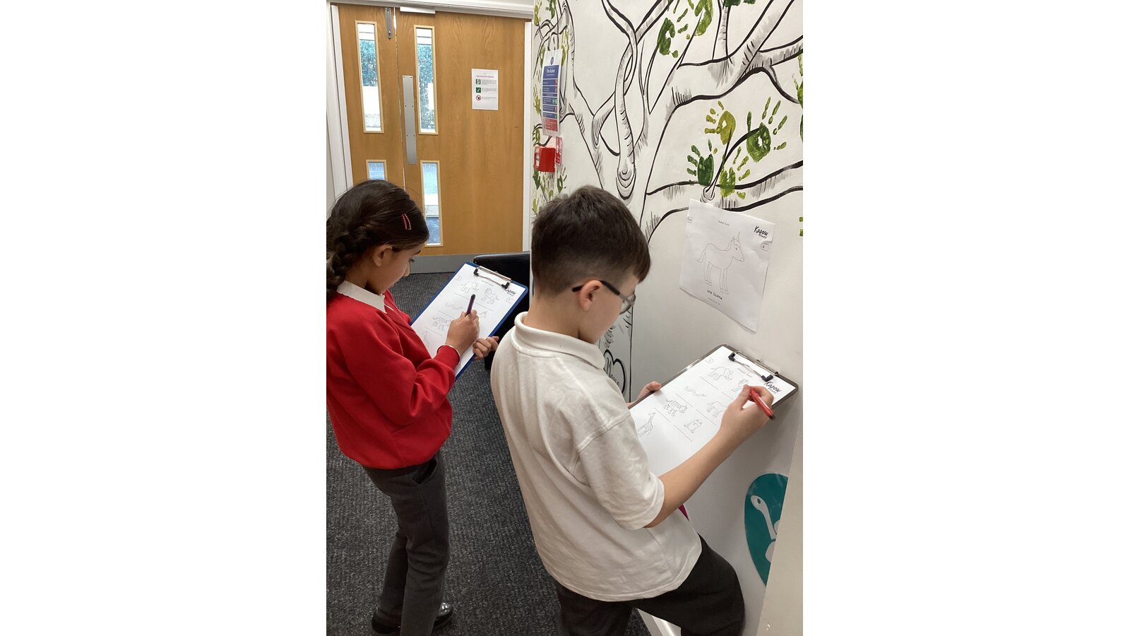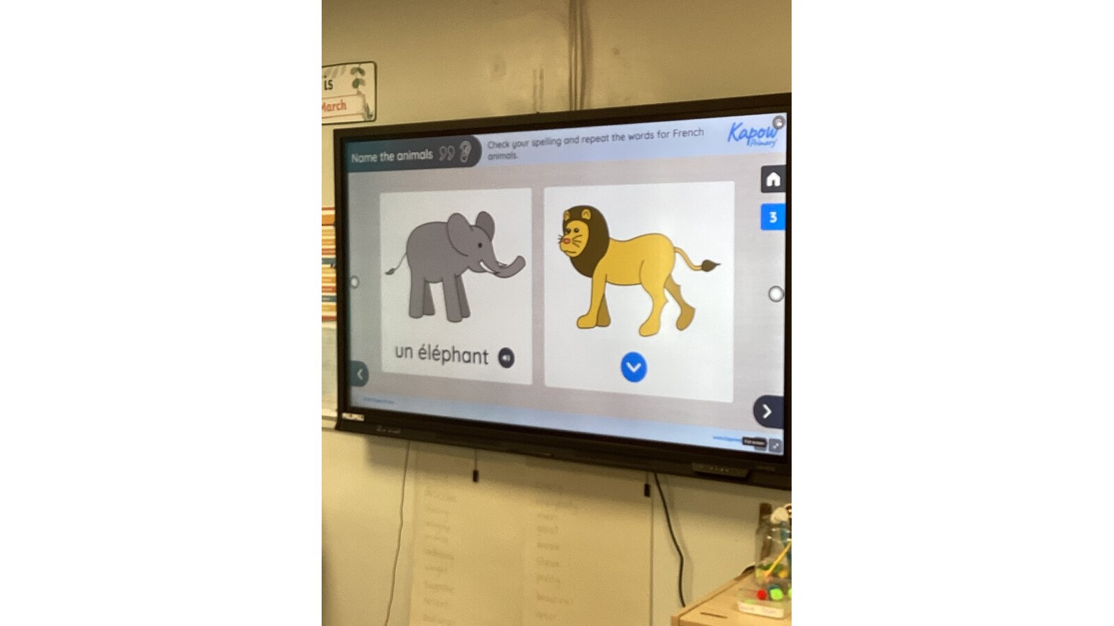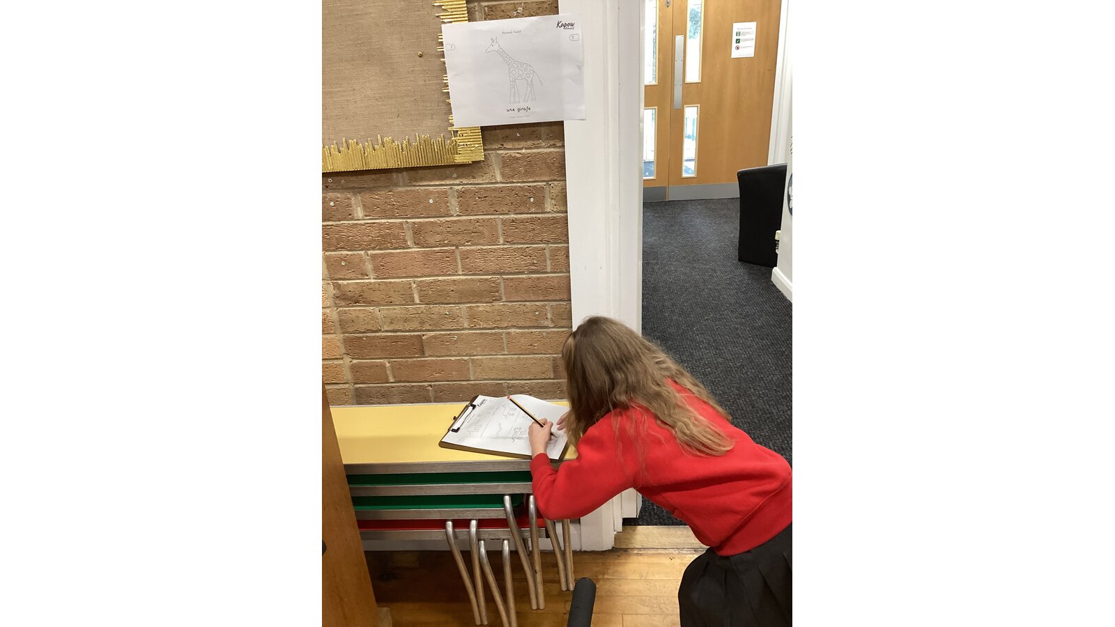 In our French lesson today we went on an animal hunt to find and copy the names of the animals in French. Back in our classroom we practised saying the names with our partners.