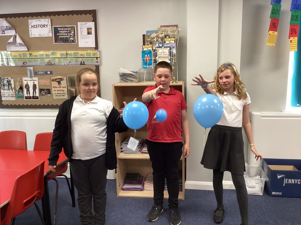 In science we have been learning about forces. We used 3 different sized balloons to test how much air resistance was acting against them. We found out that the largest balloon fell the slowest because there was more air resistance.