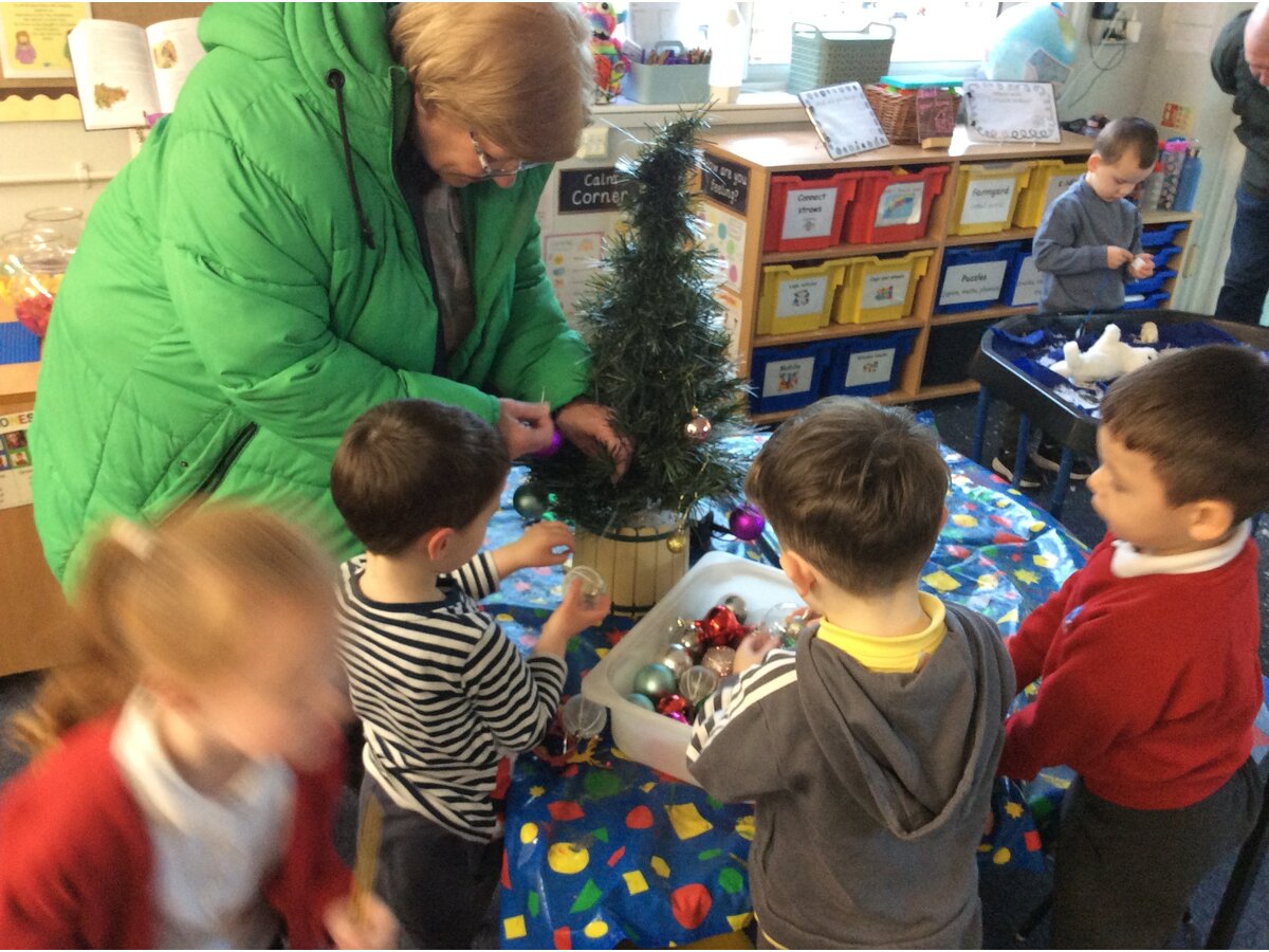 Decking the Halls: Little fingers were busy decorating our classroom Christmas tree with colourful baubles, practising their fine motor skills and festive styling.