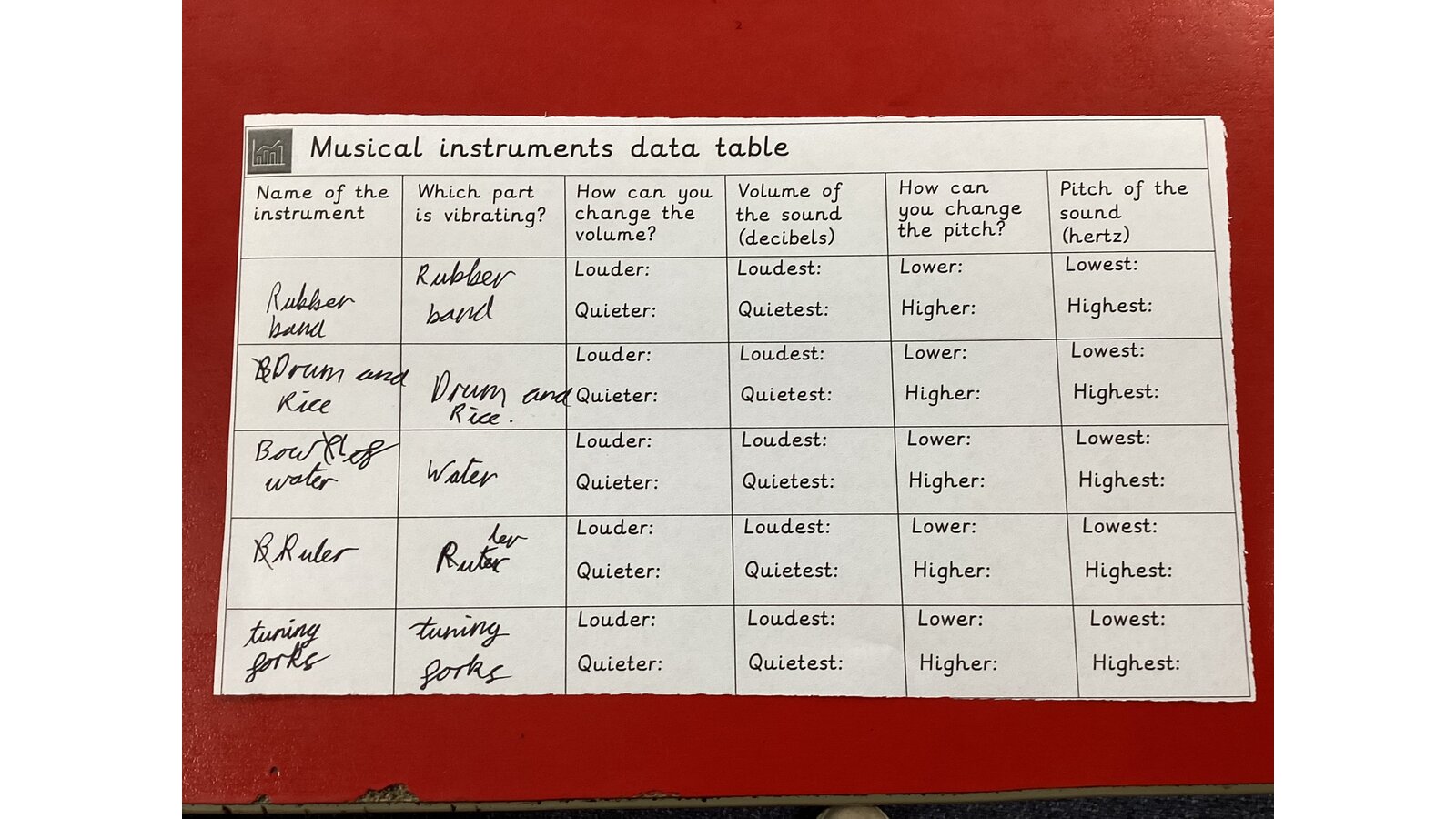 20 January 2026 Angie Long Class Two Previous Next In Science we were experimenting with different ways to make sounds and recording which part was vibrating. Science